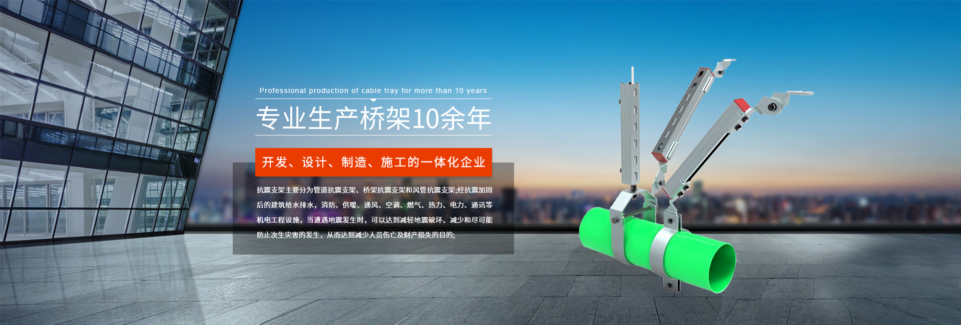 主要產(chǎn)品有:槽式、梯式、托盤(pán)式組合等熱軋、冷軋電纜橋架系列,有靜電噴塑、噴塑、鍍鋅、熱鍍鋅、熱浸鋅、鍍鋅鎳等表面處理,結(jié)構(gòu)輕、強(qiáng)度大、壽命長(zhǎng)、安全規(guī)范、外形美觀、安裝維修簡(jiǎn)單方便,是電纜、管纜、井道鋪設(shè)、樓板梁下吊裝、室內(nèi)外墻壁、電纜溝壁上的側(cè)裝、露天立柱或支墩上安裝的標(biāo)準(zhǔn)化、系列化、通用化設(shè)備。